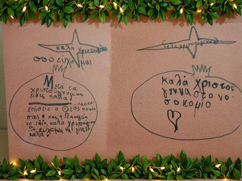 Στο σχολείο μας αυτές τις μέρες συνέβη κάτι πολύ όμορφο. Κρατώντας στα χέρια μας χαρτιά, χρώματα και μολύβια σκεφτήκαμε τον άνθρωπο που περνά δύσκολα. Τον άνθρωπο που αυτές τις γιορτές δεν είναι στο σπίτι του γιατί νοσηλεύεται.